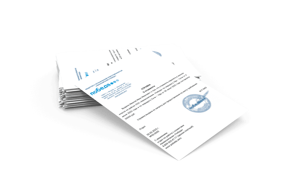 • Справка о стоимости перелета